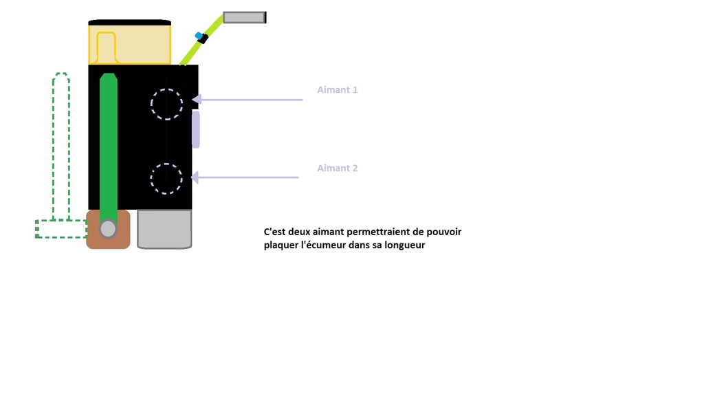 Une solution est possible avec 2 aimants de plus placés à l’intérieur du corps de l’écumeur.