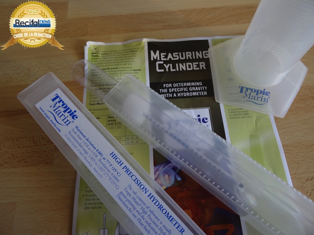 Mesurer la densité de votre eau de mer synthétique lors de la préparation ou tout simplement celle qui tourne dans votre aquarium est une des bases permettant la maintenance de l’aquarium. Cet équipement répond parfaitement à sa mission, permettre une mesure facile et fiable de la densité de son eau de mer synthétique, c’est pour cela que nous lui décernons un « testé et approuvé ». Le CYLINDRE DE MESURE Tropic Marin est disponible seul sous la référence #51000 au prix de 19,90 € ou accompagné de l’hydromètre haute précision Tropic Marin sous la référence #51022 pour un prix de 55,00 € chez tous les revendeurs de la marque prix public généralement constaté.