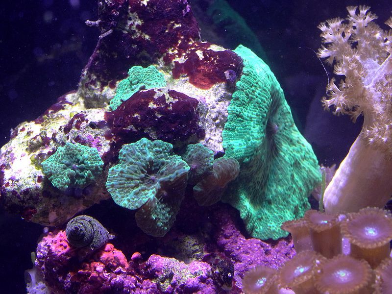 Après quelques mois d’utilisation, les coraux maintenus ont grandi, quel que soit leur type: mous (Zoanthus, Xenia, Pachyclavularia, Discosoma), LPS (Euphyllia, Caulastrea) et SPS (Montipora digitata).