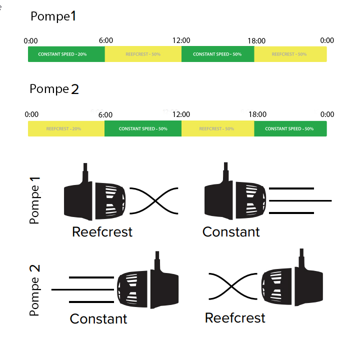 Si vous utilisez plusieurs pompes avec un ReefLink, précédemment décrit de Constant et Random peut être encore augmentée en inversant le rôle des pompes au cours de la journée.