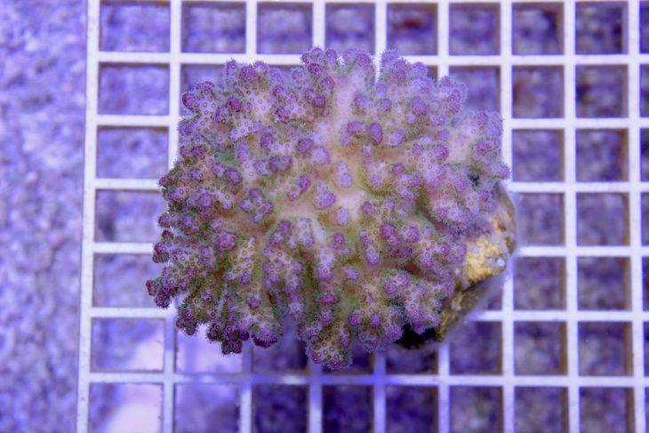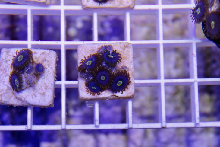 N° 7 : Un petit plug de zoanthus blueman qui parlera aux collectionneurs. Le cœur doit avoir un vert fluo incroyable sous éclairage bleu.