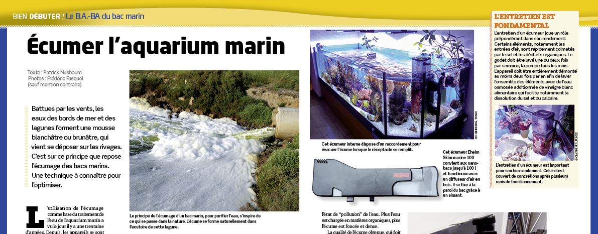 Cet article de l’Aquarium à la maison n° 120 trouve bien sa place dans la rubrique « Bien débuter ». Ecumer un bac est essentiel pour un bon fonctionnement : maintenir son eau « propre » et bien aérée permet de maintenir des paramètres optimaux dans un aquarium récifal et ainsi maintenir poissons et coraux tout en espaçant les changements d’eaux.