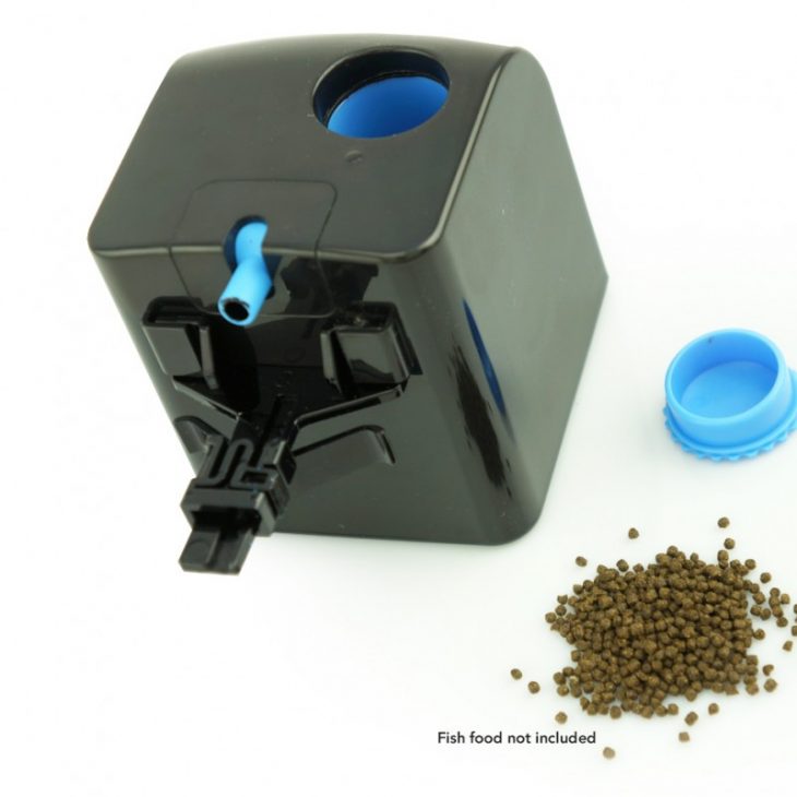 Le QShooter Fish Feeder joint l’utile à l’agréable. Il s’agit d’un distributeur de nourriture qu’il est possible de piloter depuis une télécommande ou depuis votre Smartphone ou tablette iOS ou Android. Plus qu’un distributeur, il s’agit d’un « propulseur » de granulés sur plusieurs distances, ce qui peut être pratique lorsque certains poissons sont plus timides et nécessitent d’être nourris en dehors de la masse du reste de la population. Couplé avec la QEye Camera, l’ensemble permet donc d’observer si l’ensemble de vos poissons se nourrit lorsque vous êtes en déplacement.