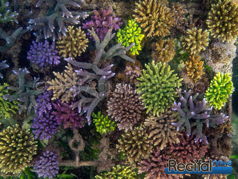 Nous avons visité pendant 2 jours la principale ferme de production d’Acropora de la Société Bali Aquarium, dans le sud Bali. Nous n’avons pas pu résister de partager quelques photos avec vous. Comme l’export a cessé, les cultivateurs se concentrent sur la production d’une collection des souches les plus rares et recherchées, et ne produisent ou maintiennent que des colonies mères. Certaines tables ont juste été laissées de côté et sont une vue dont on ne se lasse pas avec des mélanges des plus belles souches de coraux de culture Indonésiens, au maximum de leur coloration et poussant les uns sur les autres. Avec des A. hyacinthus red planet, poussant sous des A. formosa violets et à côtés d’Acropora tenuis verts. Bref, un arc en ciel de couleur : le rêve de n’importe quel récifaliste passionné d’Acropora.