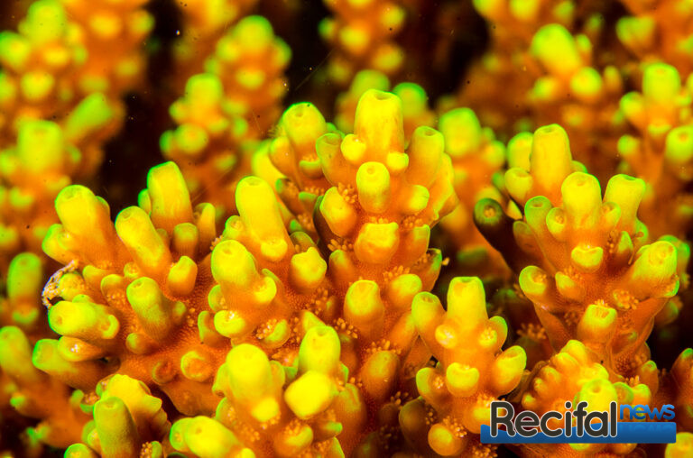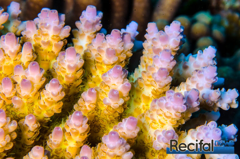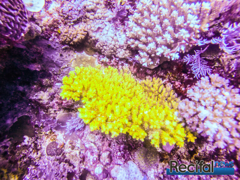 Sur ces pentes, A. anthocercis, forme des colonies qui bouchent les trous entre les énormes plateaux formés par les autres A. microclados, A. hyacinthus, A. clathrata…