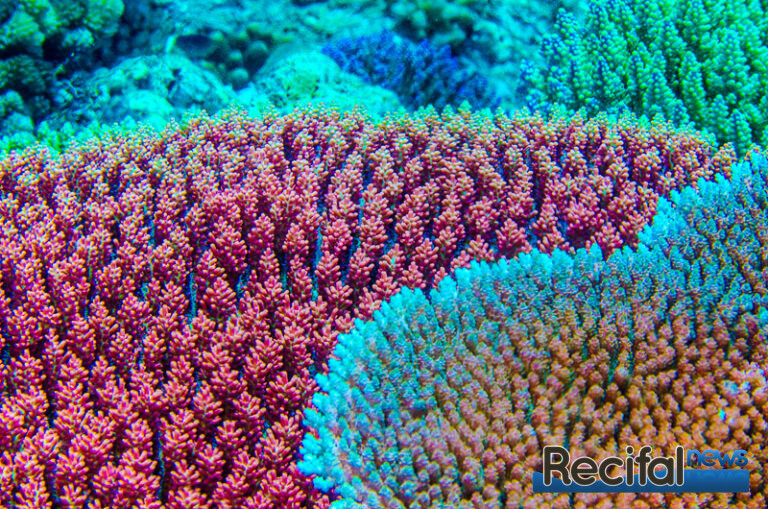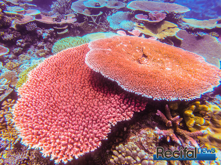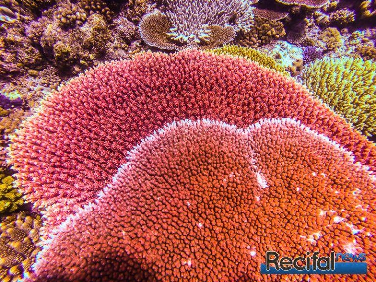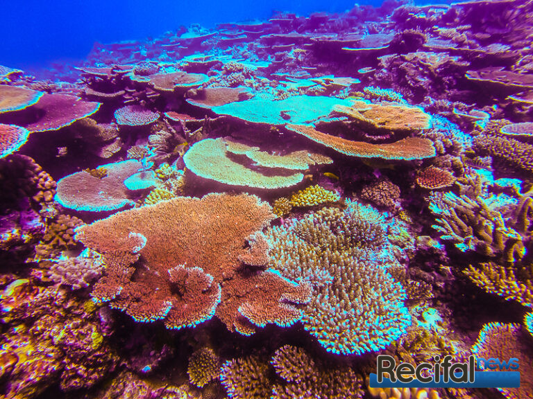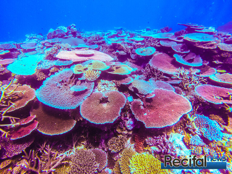 Et sur ces récifs, la partie complètement recouverte d’Acropora tabulaires, A. hyacinthus, A. clathrata, A. solitaryensis, A. anthocercis, ou les A. microclados, seront les plus beaux, ne représente qu’une petite partie d’une centaine de mètres. C’est la partie sud-est des récifs, où la houle océanique de plus de 10 m parfois vient se fracasser sur le récif. Et c’est là où la qualité d’eau est la meilleure. Eau cristalline, oxygénation optimale, tous les paramètres sont dans le vert.