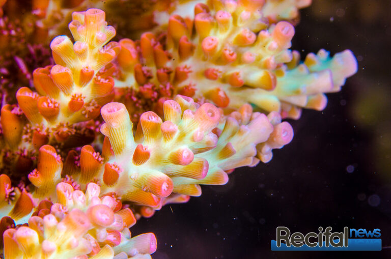 Donc dans un aquarium, l’éclairage et la circulation d’eau doivent être surpuissants. La qualité d’eau irréprochable, avec tous les paramètres, notamment Nitrates et Phosphates dans le bas de l’échelle. Et en même temps des nourrissages réguliers, directement dans le cœur de la colonie.