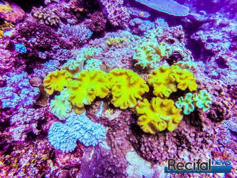 Donc Sarcophyton elegans est un des rares coraux mous qui arrive à faire sa place au milieu des propriétés de luxe pour Acropora. Là où la houle tape, l’eau est la plus pure, et la dernière portion de nourriture provenant des récifs internes vient se poser. La compétition est intense et de nombreux Acropora tabulaires arrivent à lui passer au dessus et le priver de lumière. Il résiste mieux que les Acropora aux épisodes cycloniques, grâce à sa flexibilité lorsque la majeure partie des Acropora casse. Mais cela implique qu’il ne prenne pas trop de hauteur, car sinon il se déchirerait dans la houle. C’est à ce moment-là que les Acropora prennent le dessus sur lui. Probablement que c’est un des premier colonisateur du champs de ruine laissé après un cyclone, un épisode de blanchiment ou une invasion d’étoiles de mer pourpres qui anéantissent les Acropora.