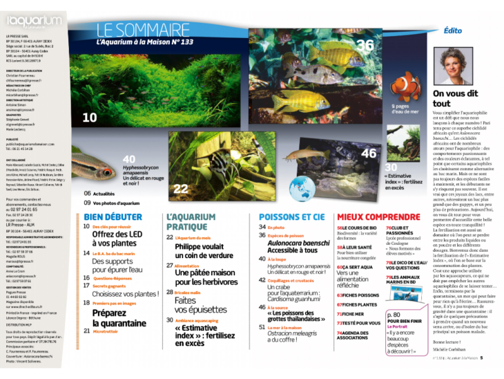 Découvrez le sommaire du nouveau et 133ème numéro du magazine l’Aquarium à la maison pour la période mai/juin 2019.