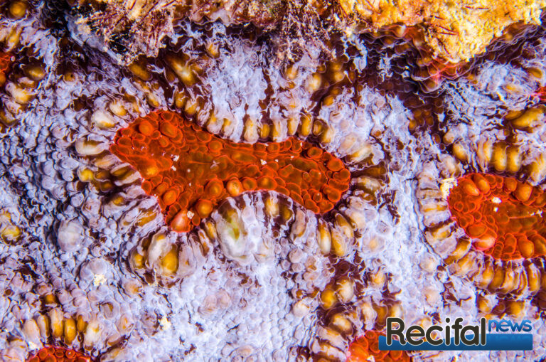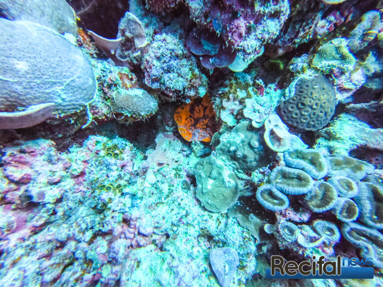 Donc la face ouest de ces récifs est exposée et on trouve les Echinophyllia orpheensis de l’autre côté, dans le lagon interne. A cet endroit, à partir d’une dizaine de mètres de profondeur et au delà d’une trentaine de mètres, les Echinophyllia poussent dans tous les trous et remplissent les trous ou la nourriture apportée par les marées se déposent. Les Echinophyllia vivent donc à l’ombre des autres coraux, dans les anfractuosités. Ils consolident la structure du récif, en bouchant les trous. Ils faut donc est très concentrés pour et bien regarder dans sous les coraux de surface pour les déceler.
