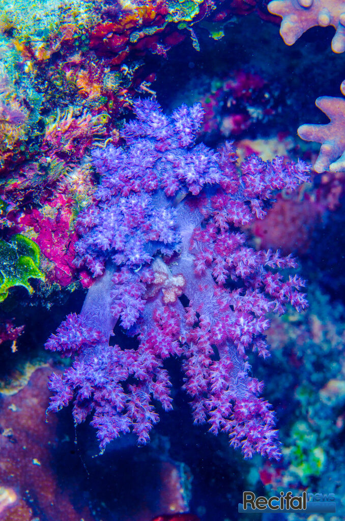 C’est vrai qu’il existe de nombreux coraux mous dans la famille des Nepthiidae qui sont extrêmement colorés. Surtout en ce qui concerne les jaune, orange, rose ou rouge. Des Dendronephthya, Scleronephthya ou Stereonephthya roses, sont disponibles depuis des années. Alors pourquoi en faire toute une histoire ? C’est parce que les Nephthya sont hermatypiques, possèdent des zooxanthelles et ont donc besoin de lumière. Ils peuvent donc survivre dans les aquariums récifaux assez facilement contrairement aux autres genres cités qui doivent être nourris intensément pour survivre et ne peuvent donc pas être maintenus dans des aquariums récifaux classiques.