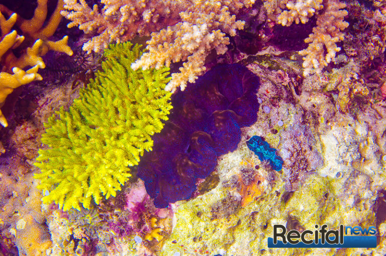 J’ai pu aussi voir une multitude de Tridacna derasa bleus, chose que je n’avais jamais vu ailleurs. Ces bénitiers sont absolument magnifiques et certains d’entre eux font près de 50 cm de long.