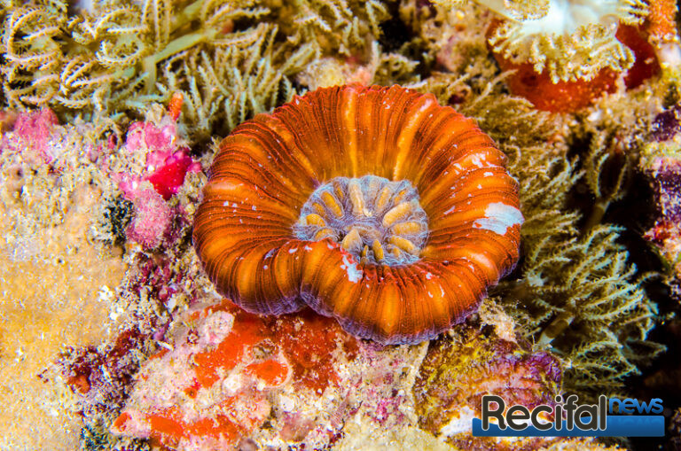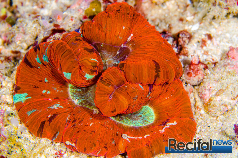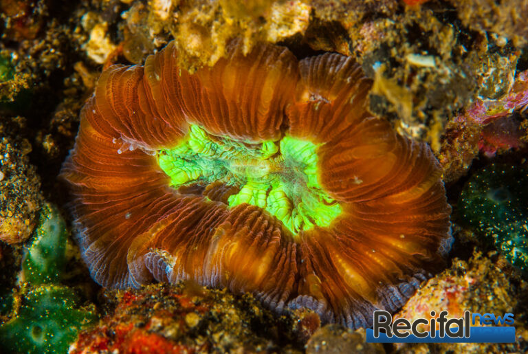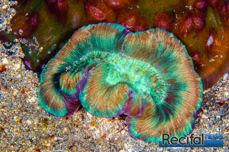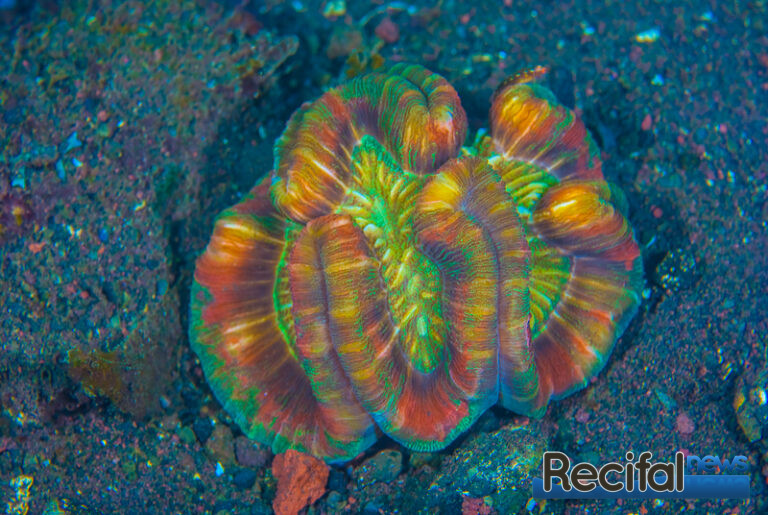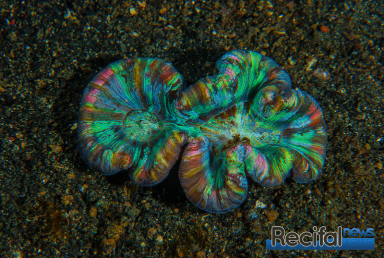 Tout cela pour dire que le nourrissage est évidemment d’une importance majeure. Comme tous les coraux, ils exposent leurs tissus à la lumière la journée et leurs tentacules à la nourriture la nuit. Il faut donc les acclimater à être nourris la journée. Leur donner le temps de sentir le repas et de se préparer pour ça en sortant ses tentacules. Le métabolisme de ces animaux est assez lent, mais petit à petit ils comprennent plutôt vite et s’ouvriront rapidement. Bien évidemment, si vous pouvez rester constant quant à l’heure du nourrissage, le corail s’ouvrira automatiquement en temps et en heure. Une nourriture assez large mais pas trop, 2-3 mm est parfait, soit en granulés, soit des morceaux de poisson, crevette… Ce qui est riche en acide aminés, avec un petit bain dans une solution de vitamines au préalable est parfait. Un nourrissage bi-hebdomadaire suffit de quelques morceaux à peine suffiront.