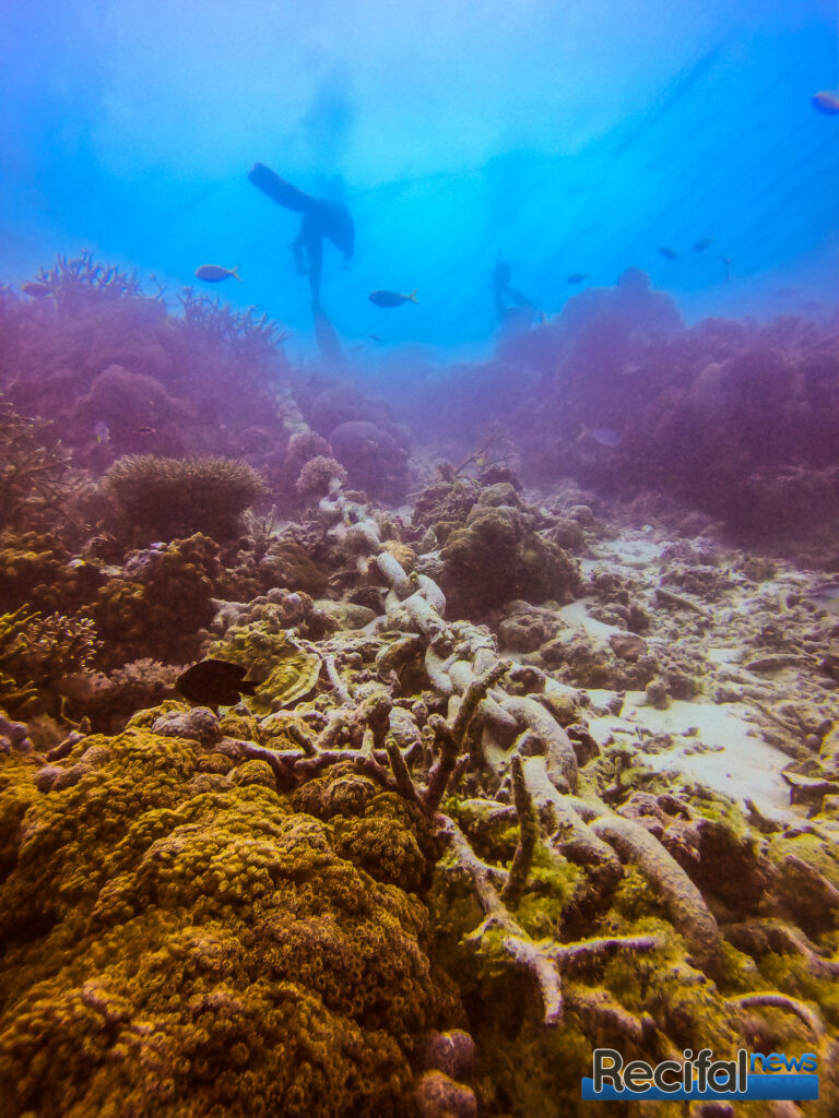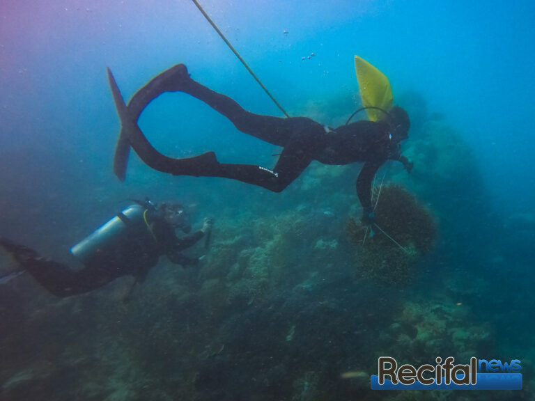 Plusieurs visites de mise en place pour réaliser un état des lieux, et préparer la mise en place des transects et des zones où les coraux seraient replantés. Ce récif est encore en bonne santé donc trouver des zones abîmées où il y a assez de place pour planter un certain nombre de coraux est assez compliqué. Ensuite il nous a fallu 8 jours à 3, avec 6 à 8 heures de plongée par jour pour accomplir ce travail. Heureusement que nous travaillions au narguilé, ce qui nous permettait de rester pratiquement aussi longtemps qu’on le souhaitait sous l’eau, dans la mesure où les paliers de décompression étaient respectés.