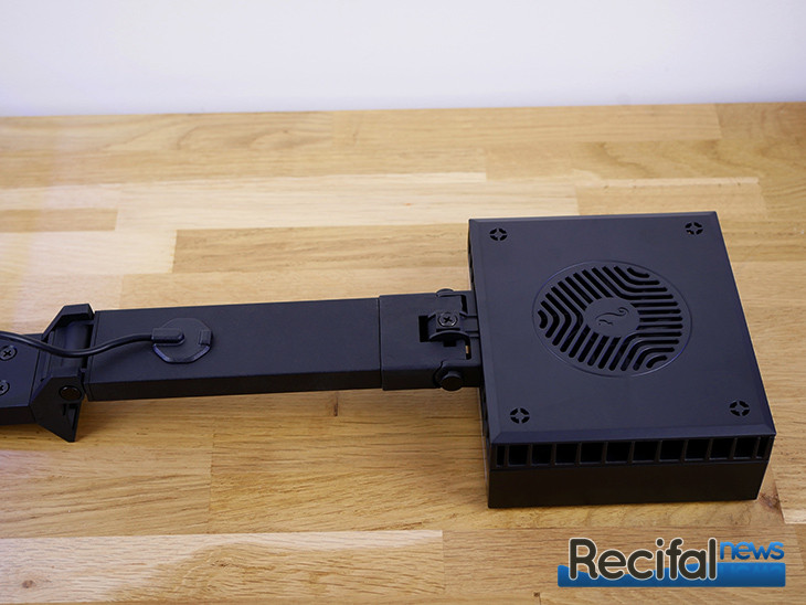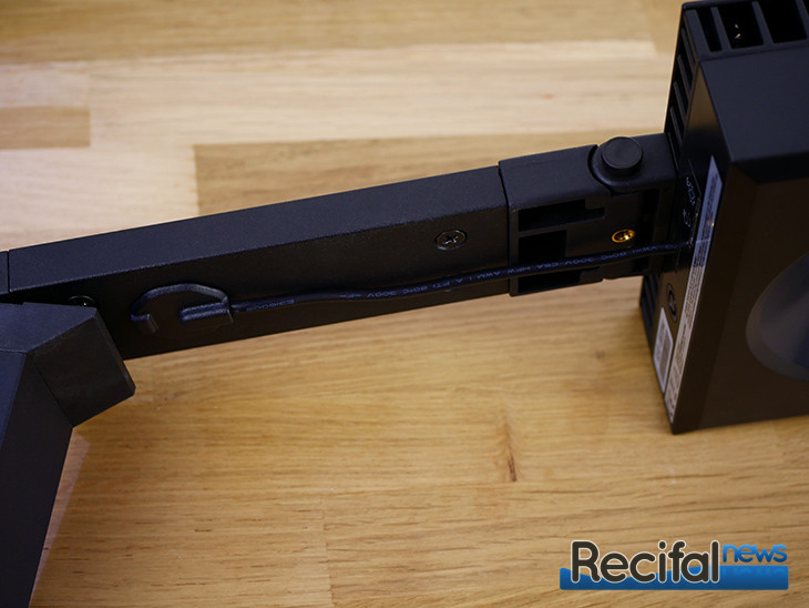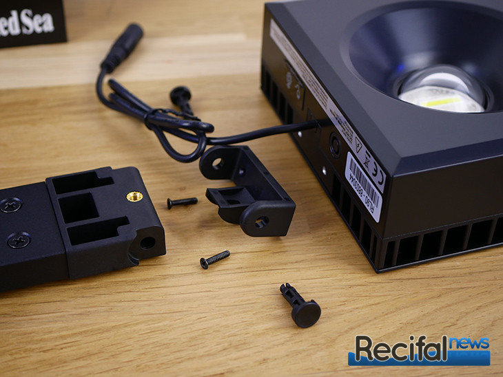 Le Mounting Arm kit dispose de 2 trous pour passer proprement le câble de la ReefLED. Deux pièces en plastique permettent de le maintenir le long du pied de fixation.