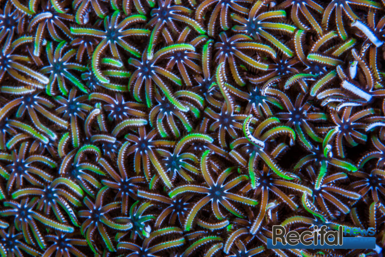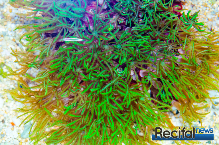 Il existe quelques souches absolument magnifiques, beaucoup de vert métallique, de bleu ou de blanc. Le blanc est une couleur rare chez les coraux. C’est donc un ajout tout à fait intéressant. Mais je pense que ce qui est le plus beau chez cette espèce, c’est la forme des polypes, des tentacules et des bouches qui existent dans une variété de formes, de longueur, de dessin tout à fait impressionnante. C’est donc intéressant de collectionner quelques souches différentes et de les regrouper dans une zone de l’aquarium et ainsi obtenir un bouquet, un massif de polypes de couleurs et formes mélangées mais qui coexistent ensemble.