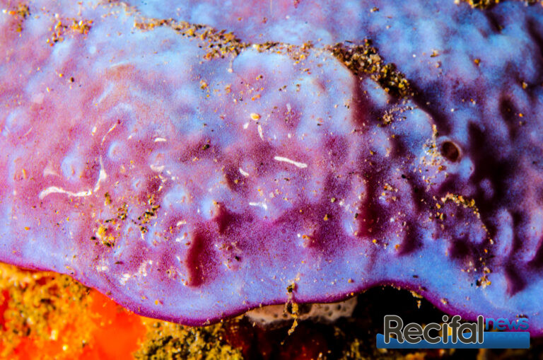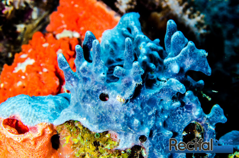 Collosponia auris est une éponge bleue assez remarquable. Dans le milieu naturel, elle a une tendance à étouffer les coraux, mais en aquarium, elle pousse correctement et si on arrive à la contrôler, elle fait un invertébré très intéressant.