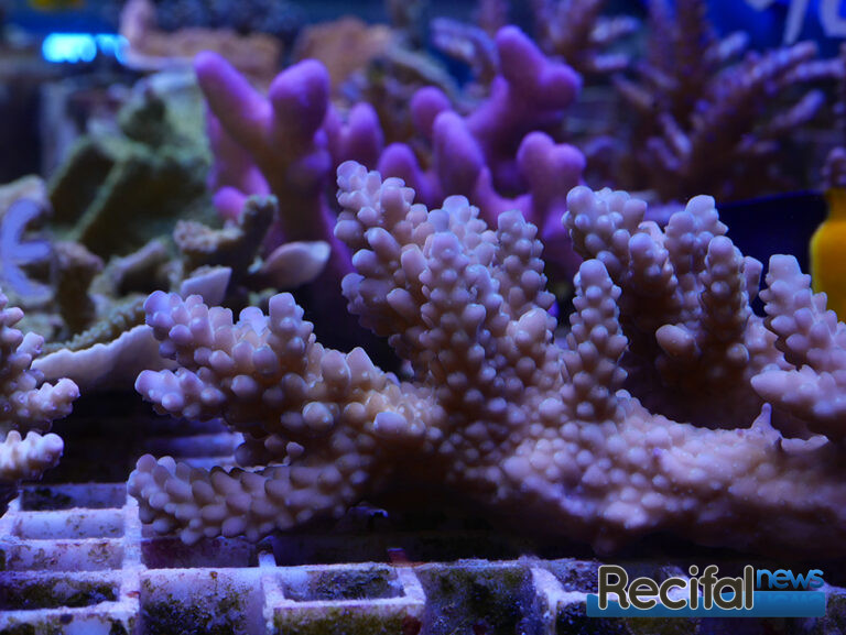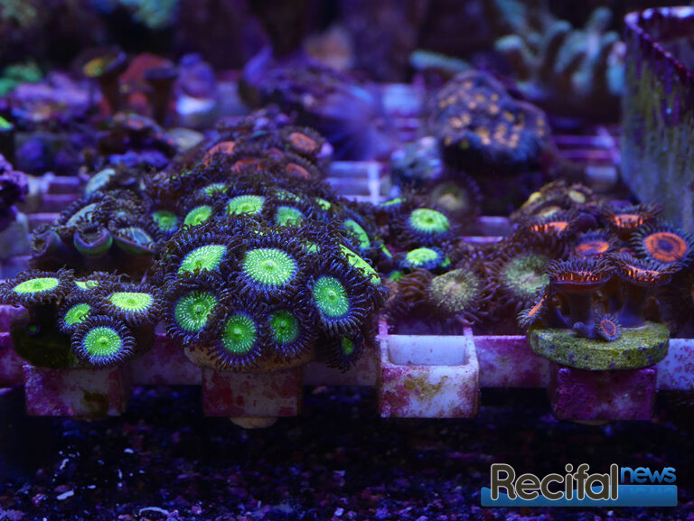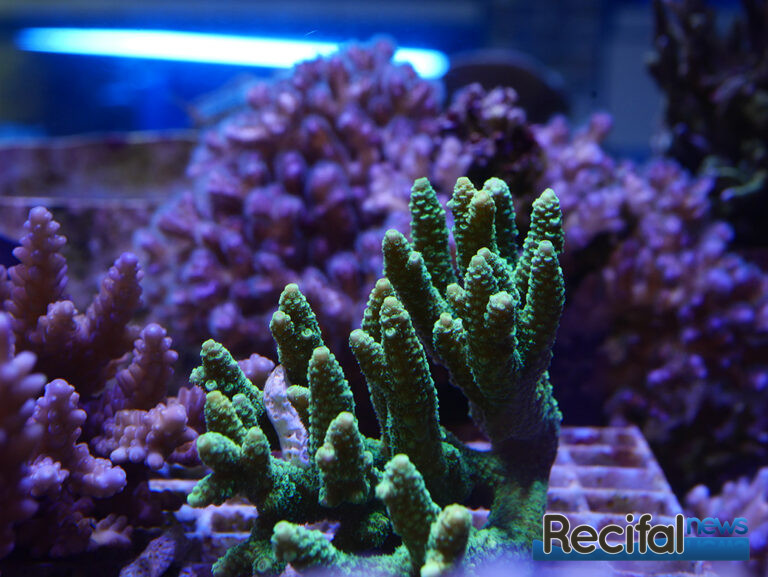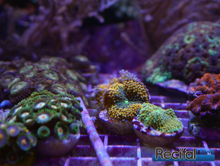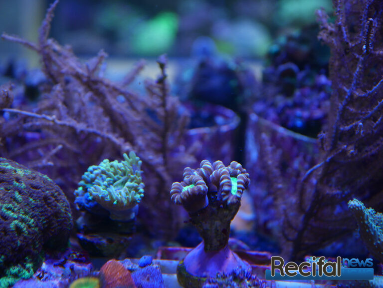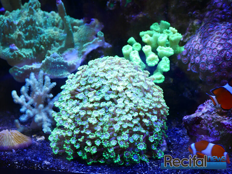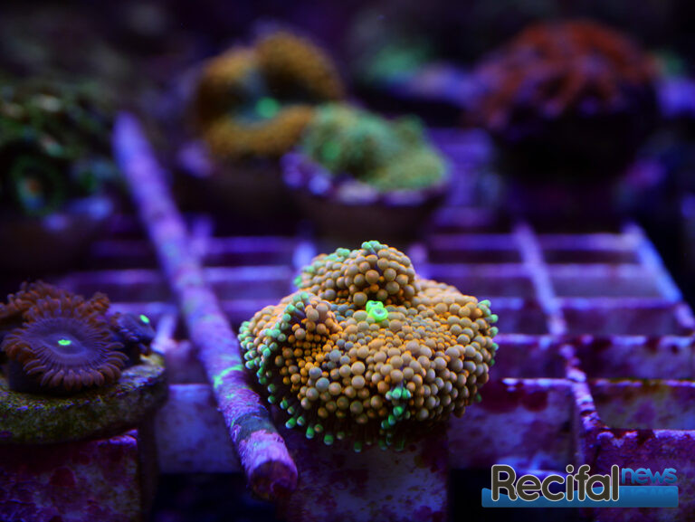 Côté vivant, deux tables à coraux en position centrale permettent d’observer les coraux des deux côtés. Une est principalement dédiée aux SPS, la seconde aux LPS et coraux mous. Malgré la situation que nous connaissons vis-à-vis de l’exportation des coraux d’Indonésie, le choix est varié. On y trouve de beaux pieds comme des boutures de petite taille, des classiques faciles pour débutants aux coraux plus exigeants. Rien de tel que des photos pour vous donner l’eau à la bouche :