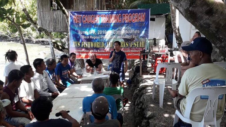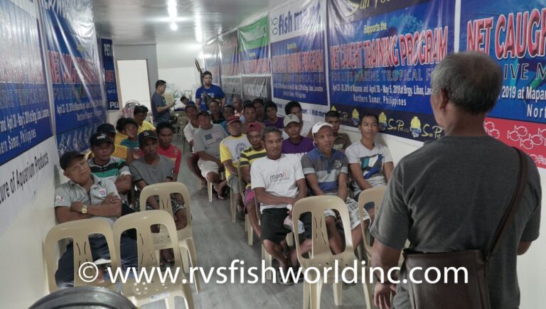 RVS fishworld a décidé de monter des stations de collecte dans les 4 coins des Philippines où a lieu la collecte et bypasser tous les intermédiaires et donc de rémunérer les pêcheurs correctement. Ils fournissent bateaux, filets, compresseurs, sacs plastiques, élastiques, oxygènes … aux pêcheurs. Ils fournissent des formations aux pêcheurs, pour les former sur la plongée en toute sécurité, la collecte à l’aide de filet et toutes les techniques nécessaires à la réforme de notre industrie. Ainsi des zones de pêches entières qui avait été fermées à la pêche de poissons d’aquarium, où l’utilisation de compresseurs avaient été interdites, peuvent être ré-ouvertes à la collecte de poissons d’ornement et les pêcheurs peuvent gagner leur vie correctement. Ce qui est là la principale victoire, et c’est pourquoi de plus en plus de maires font appel à RVS fishworld pour venir former et équiper leurs pêcheurs. Les pêcheurs sont ainsi certifiés pour deux ans et doivent passer une formation de rappel tous les deux ans. Les formations sont données sous la direction du bureau des pêches. Cette action est très bénéfique pour le développement et la prospérité de ces communautés côtières. Et cela marche, puisque le cyanure est en voie d’être éradiquer des Philippines et les exports sont en constante augmentation, donc de nouvelles communautés sont formées chaque année.