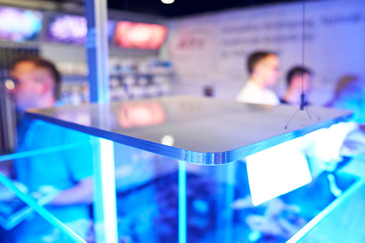 Au premier regard, nous sommes étonnés par sa finesse ! Avec ses 12 mm d’épaisseur, on ne la remarque qu’à peine. Sa finition blanche et aluminium sur la tranche est très contemporaine. Elle mesure 47 cm de côté et seul un fin câble en ressort sur le milieu, à l’arrière de la rampe. ATI a vraiment voulu une rampe épurée d’un point de vue esthétique.