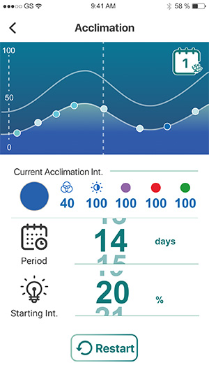 - un programme d’acclimatation permet d’habituer vos coraux à votre nouveau programme d’éclairage