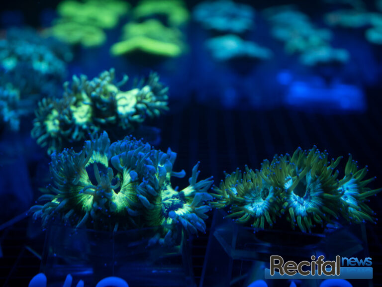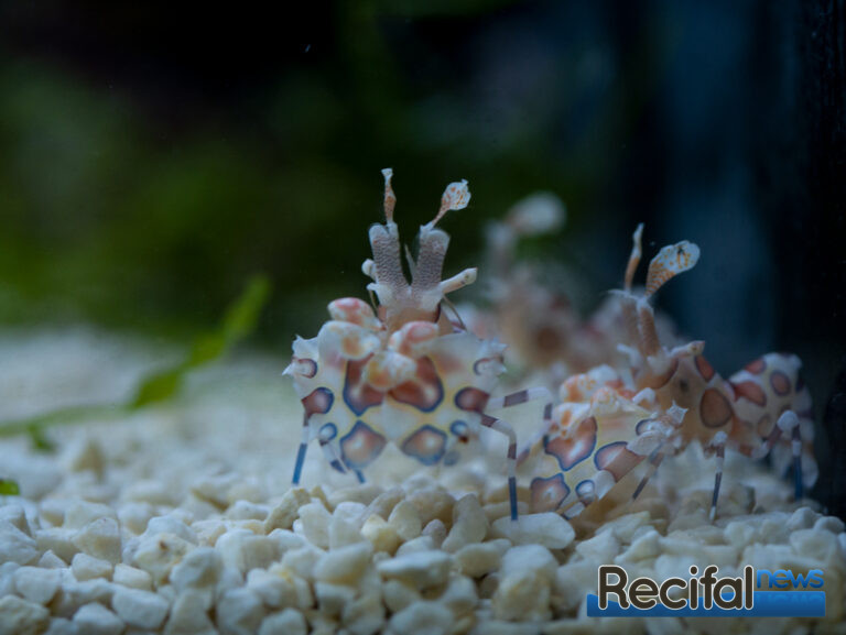 Le choix de détritivores est vaste, des poissons vous sont proposés pour agrémenter votre récif et de ce côté là, Recifathome proposent de plus en plus de poissons d’élevages. De nombreuses variétés de poissons clowns d’éleveurs différents, des Synchiropus splendidus, des Acreichthys tomentosus, des Pseudochromis fridmani étaient disponibles lors de cette inauguration. Côté invertébrés, des Hymenocera picta d’élevage, redoutables contre les Asterinas, sont proposées.