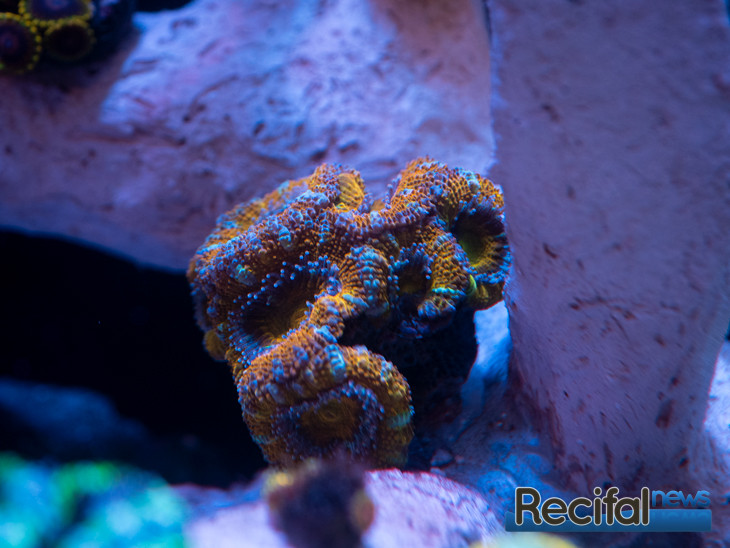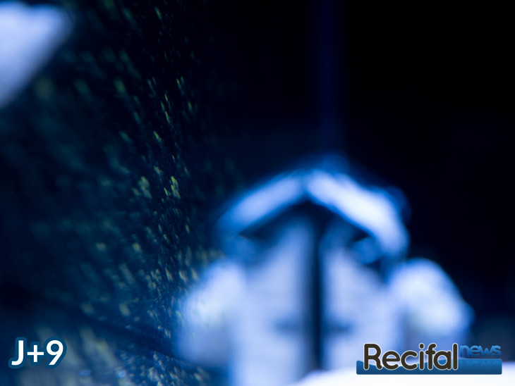Ces actions se sont révélées radicales, la photo du quinzième jour parle d’elle-même. N’ayant plus d’algues à J+17, je décide de peupler Le Waterbox Cube 10 avec une bonne partie des coraux, essentiellement des Micromussa lordhowensis (anciennement Acanthastrea), Zoanthus et un Seriatopora caliendrum et Montipora setosa, premiers SPS pour peupler à terme le haut de l’aquarium. A terme, l’ensemble des coraux n’y resteront surement pas : je sélectionnerai les coraux s’y développant le plus pour les laisser, les autres iront dans le reste de mes aquariums.