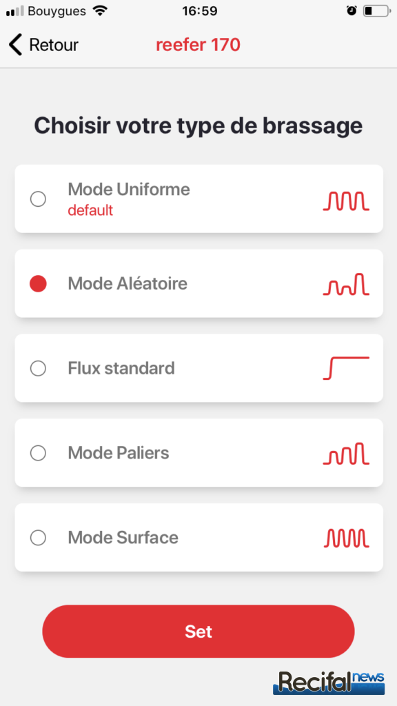 L’application vous demande alors de choisir le brassage que vous désirez instaurer en guise de premier réglage – basez-vous donc sur les observations faites en utilisant le boîtier précédemment !