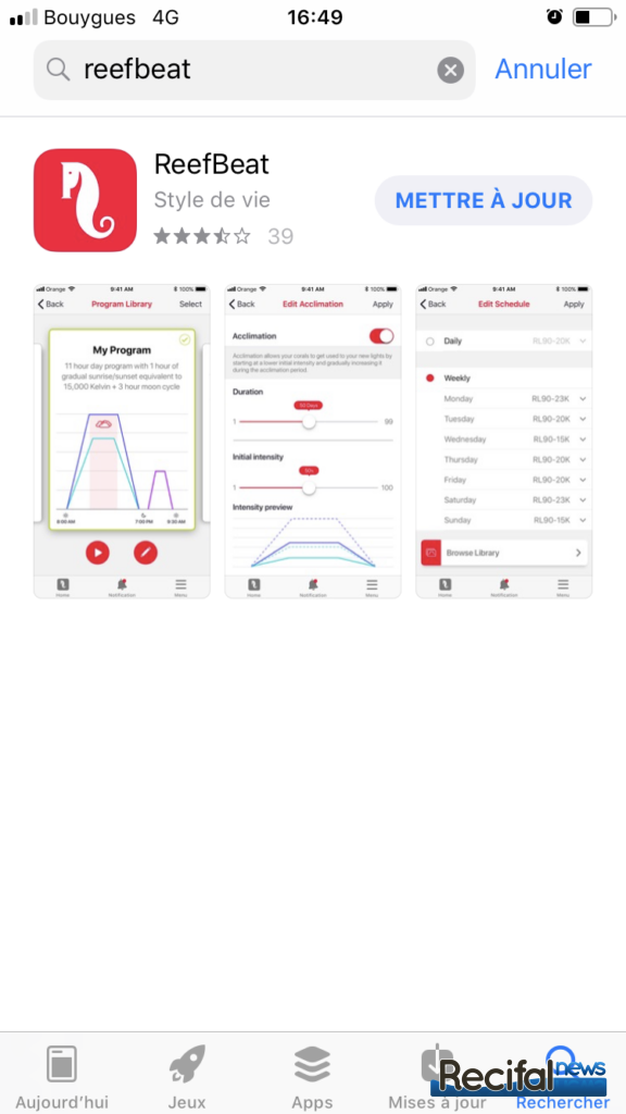 Première étape pour piloter la Reef Wave depuis l’application Reefbeat : la mise à jour pour la version 1.9.1 ou version ultérieure.