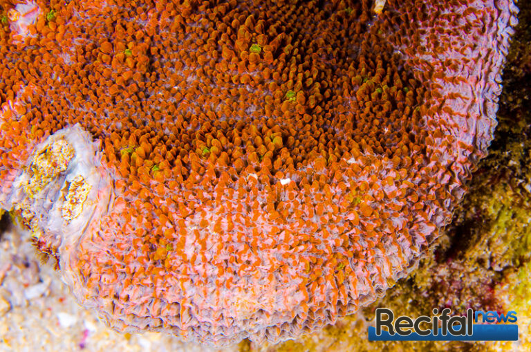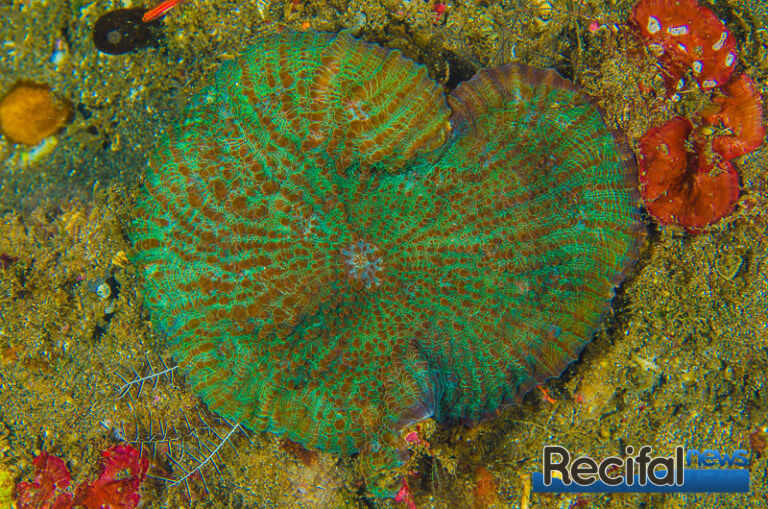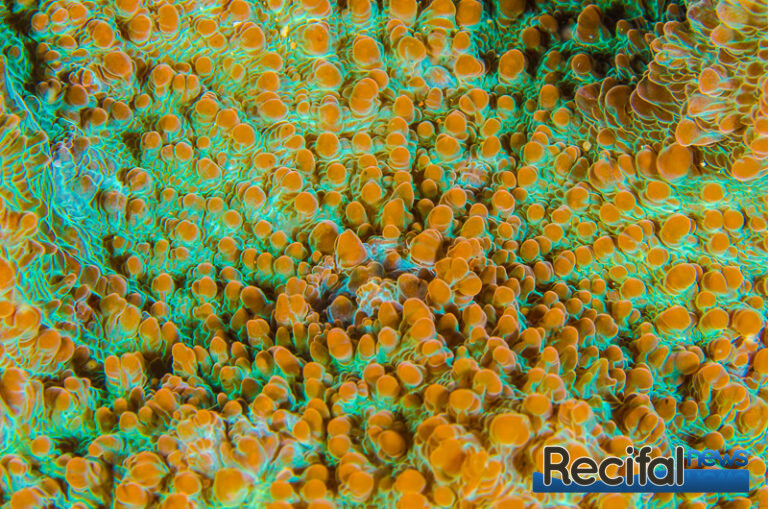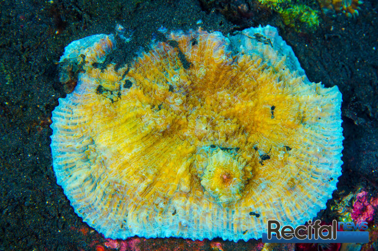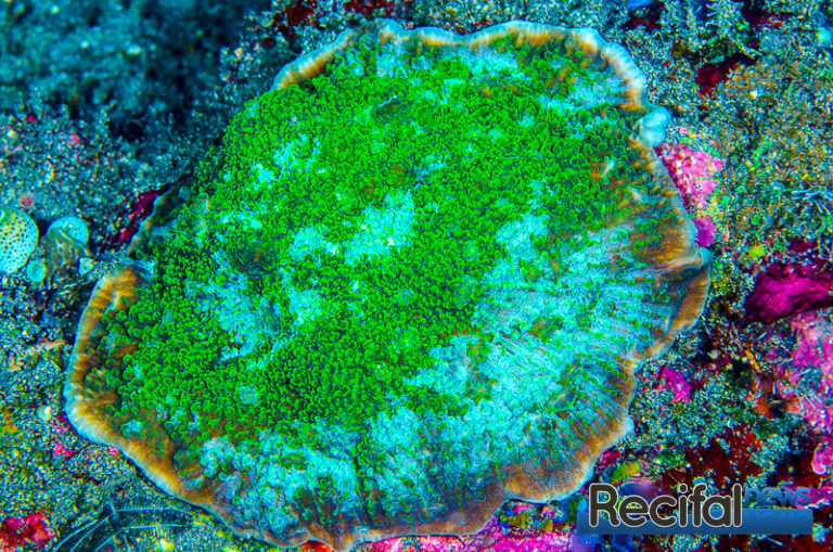 E. patula peut donc occuper la partie inférieure d’un bac de SPS, même à l’ombre d’autres coraux, car il peut se contenter de lumière indirecte. Ou la partie haute d’un bac de LPS profonds.