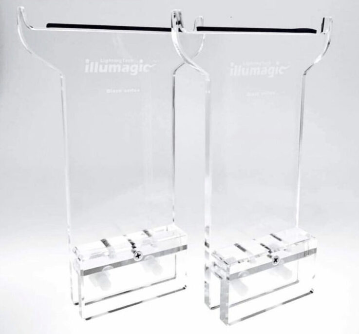 Alors qu’un kit de suspension est fourni d’origine, il est possible d’acheter des pieds en acrylique transparents pour poser ces éclairages sur les rebords de l’aquarium. Les pieds sont annoncés au prix de 59 € la paire.