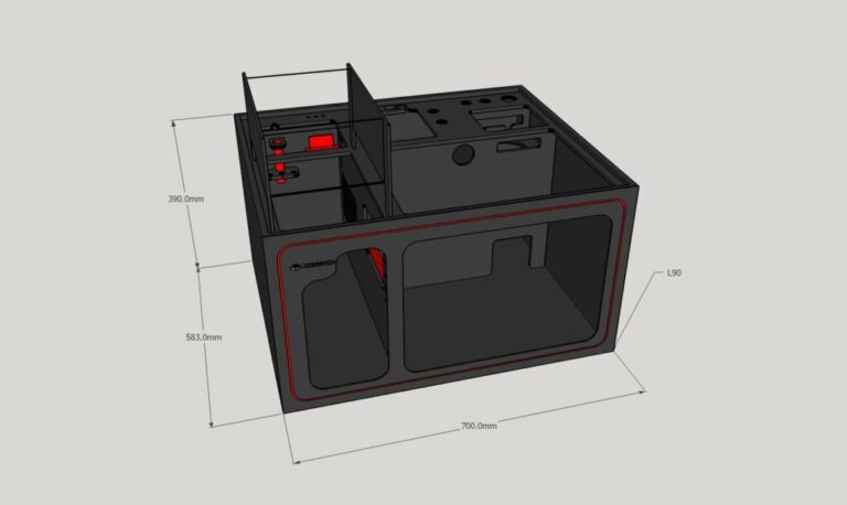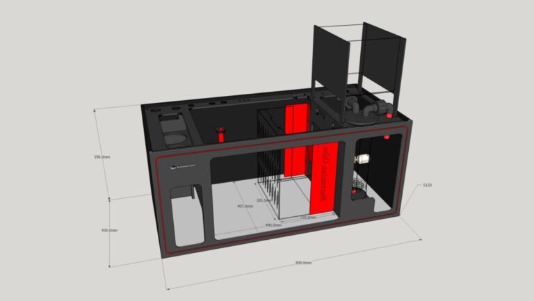 Concernant les décantations, elles comprennent les différents éléments essentiels pour s’adapter à tout type d’installation et de méthode de maintenance : compartiment pour filtre micron bag, compartiment pour écumeur et réacteurs, compartiment pouvant servir de refuge, réserve d’eau osmosée de 12 litres reliée à un système de compensation automatique d’évaporation, supports pour différents capteurs (pH mètre, sonde redox …), support pour tuyaux de pompes doseuses.
