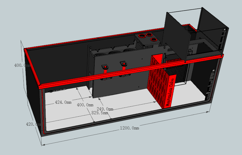 Ce modèle mesure 120 cm de long, 55 de large et 55 de haut avec la colonne de débordement dans l’angle droit. Il est fabriqué en verre 12 mm et dispose d’une décantation de 149 litres.