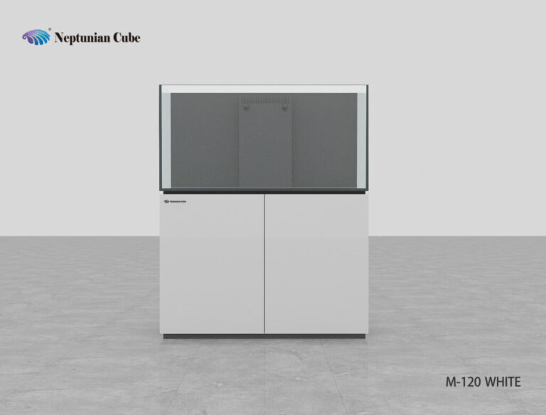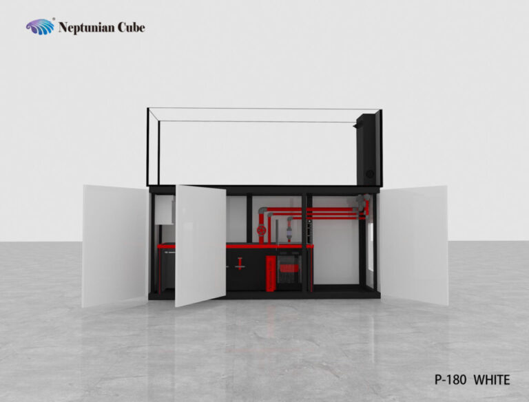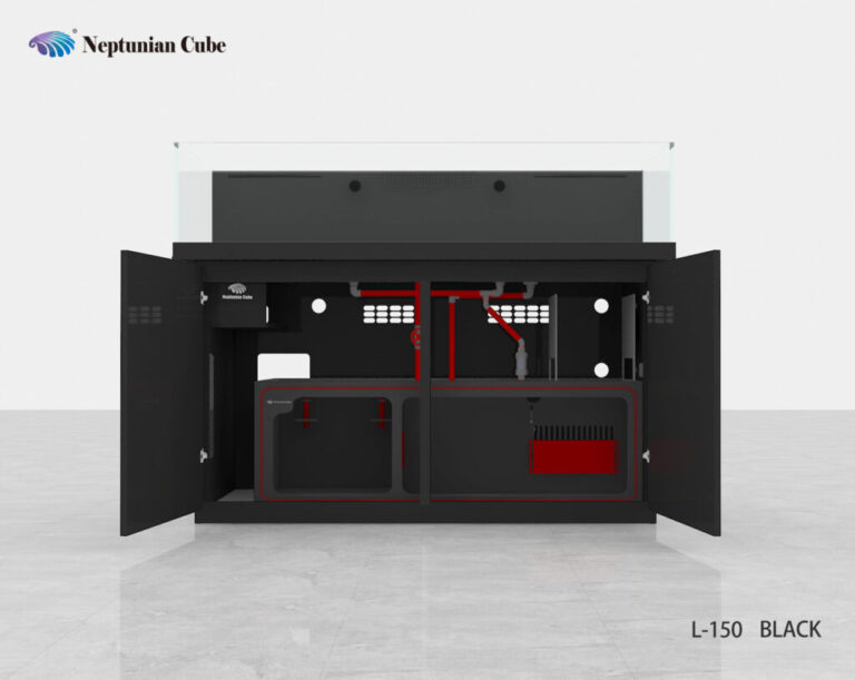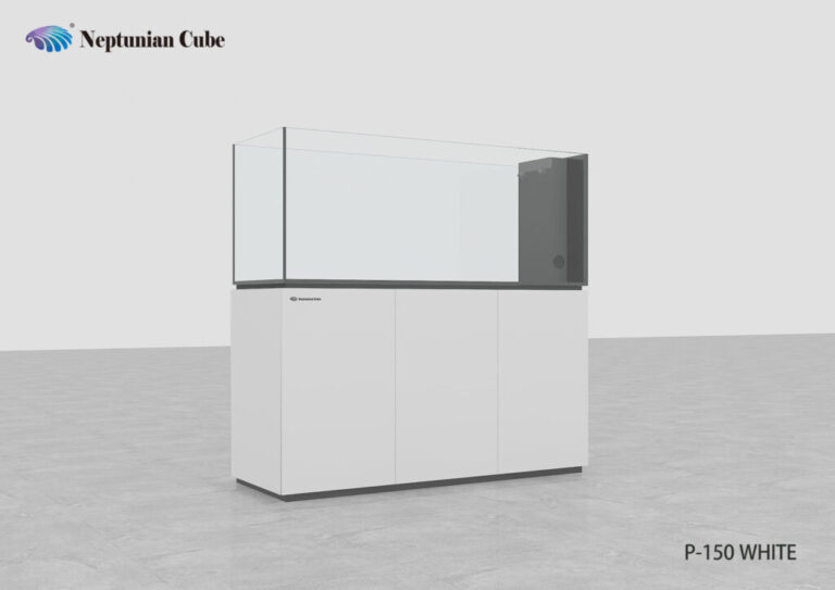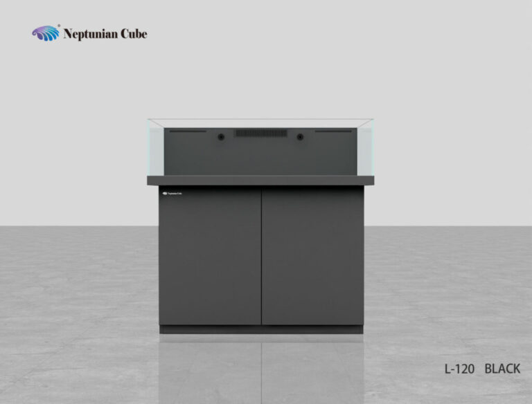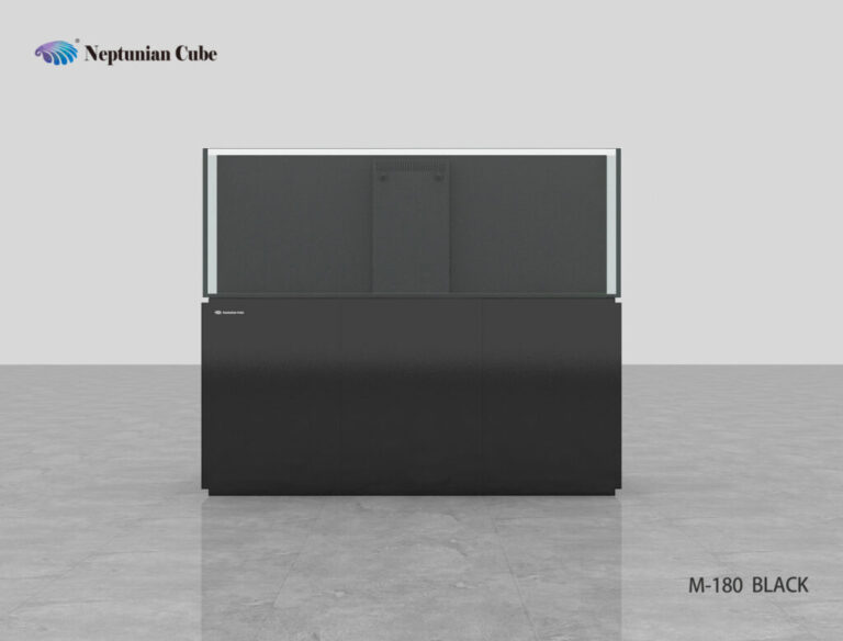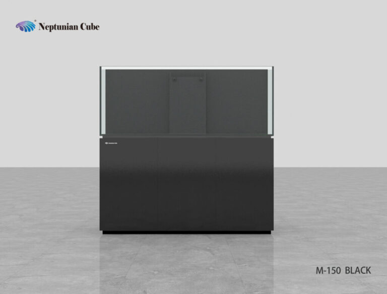 Neptunian Cube propose des aquariums montés sur meuble et équipés d’une décantation. Tandis que les aquariums sont fabriqués en verre cristal de haute qualité, les décantations sont, elles, en acrylique noir et face transparente. Pour accentuer l’effet de transparence du verre, les joints sont en silicone transparent et un soin particulier serait apporté à leur finition. L’ensemble des modèles sont sans renforts, cela grâce à une épaisseur de verre suffisante.
