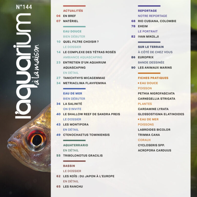 Pour vous accompagner dans votre passion, voici le sommaire du prochain numéro du magazine L’aquarium à la maison, le 144ème, pour la période de mars et avril 2021.