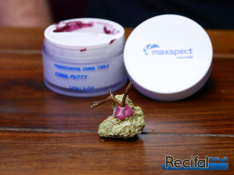Sa couleur rose « coralline » se fond parfaitement rapidement dans le décor. La Coral Putty de Maxspect est inodore, ne tache pas les mains et ne trouble pas l’eau ! Il est possible de l’utiliser dans l’air comme dans l’eau. Aucun effet sur le fonctionnement de l’écumeur n’a été détecté lors de mes essais.