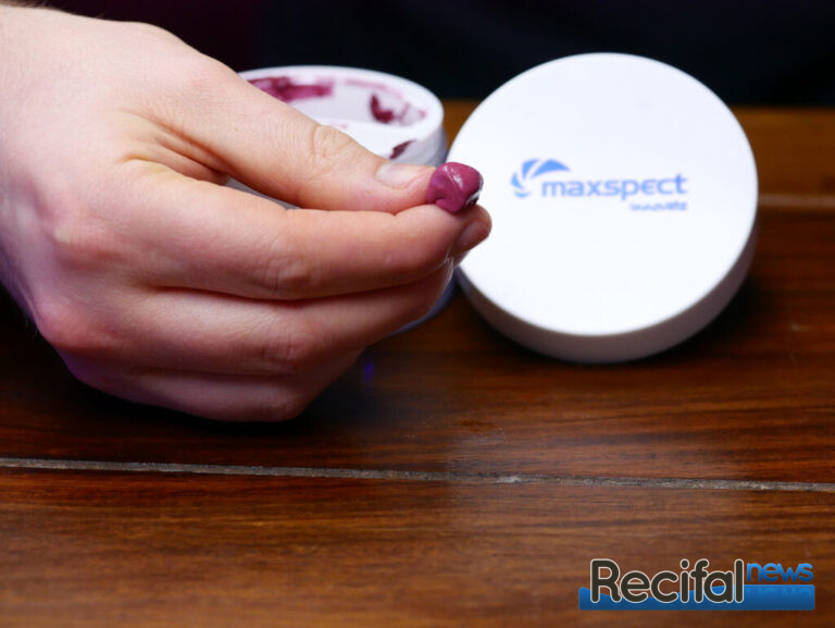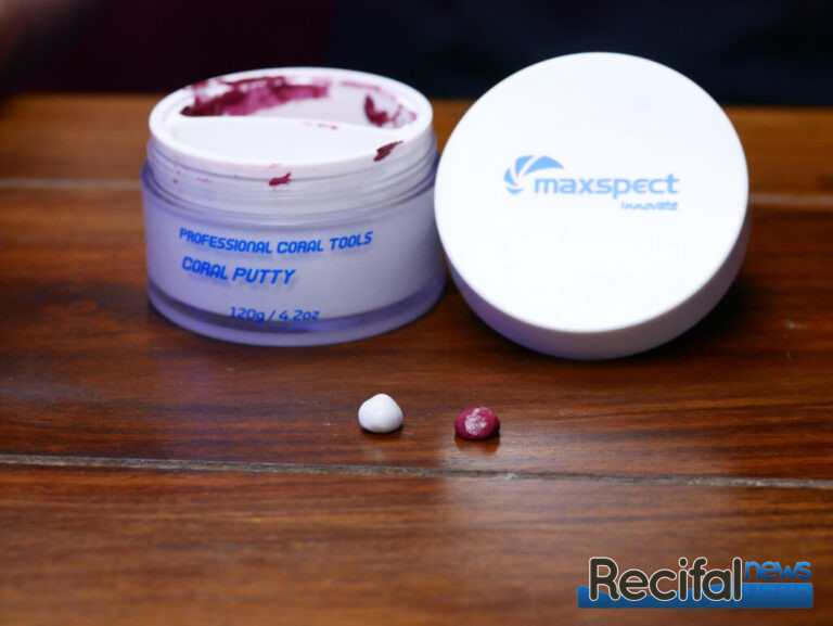 Sa couleur rose « coralline » se fond parfaitement rapidement dans le décor. La Coral Putty de Maxspect est inodore, ne tache pas les mains et ne trouble pas l’eau ! Il est possible de l’utiliser dans l’air comme dans l’eau. Aucun effet sur le fonctionnement de l’écumeur n’a été détecté lors de mes essais.