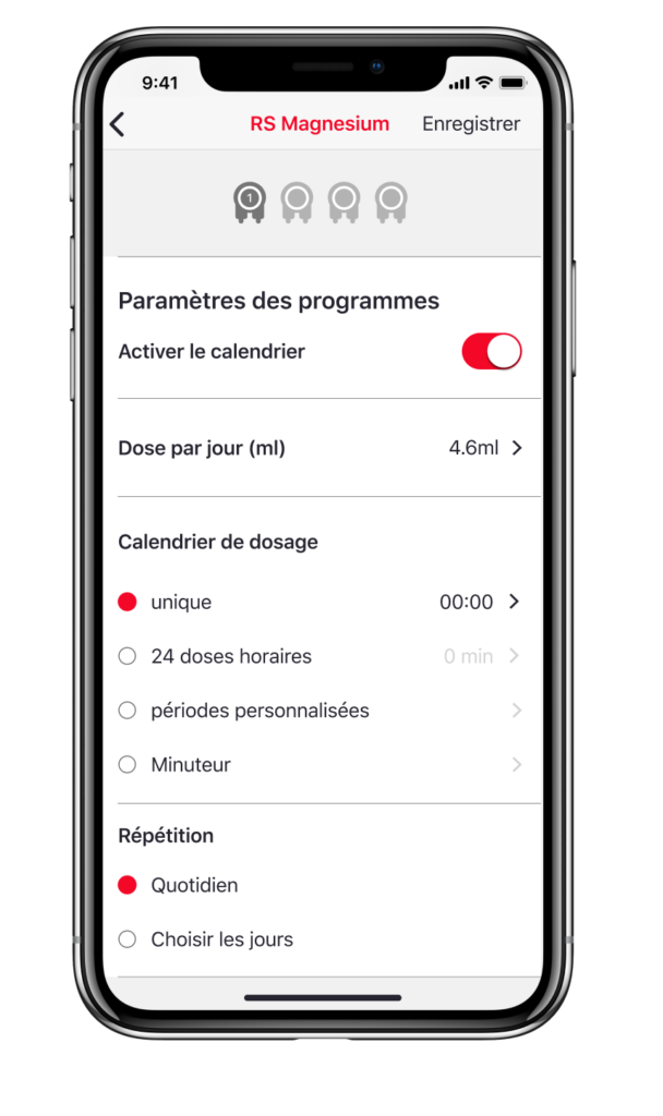 Un indicateur de niveaux des différents produits de supplémentation est également proposé sur l’accueil de l’application, ce qui permet d’anticiper le réapprovisionnement des solutions.