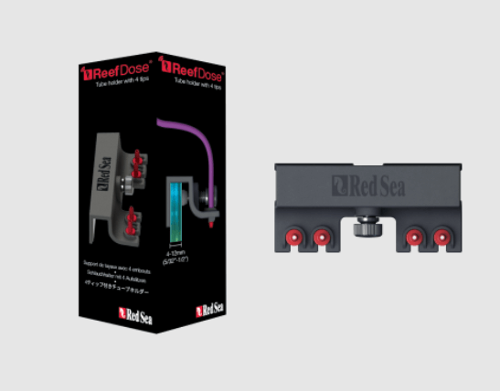 Seul un support mural est fourni à l’achat des ReefDose. Il faut alors s’équiper de tuyaux pour alimenter les différentes têtes de dosage. Pour cela, Red Sea propose des kits « ReefDose Deluxe » comprenant 4 tuyaux de 3 mètres en Thermo Plastique Elastomère (TPE) colorés, imperméable à l’air (contrairement au silicone classique), 3 organisateurs de tuyaux et un support pour les fixer à votre aquarium ou votre décantation. Il existera en coloris Bleu/Vert et en Jaune/rouge. Le kit complet sera vendu au prix public annoncé de 30 € environ.