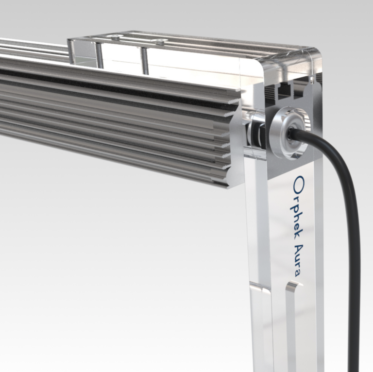 Ces Orphek Aura viennent compléter les solutions d’installation d’éclairages Orphek avec notamment les récents rails de suspension et les pieds d’accroche à l’arrière de l’aquarium.