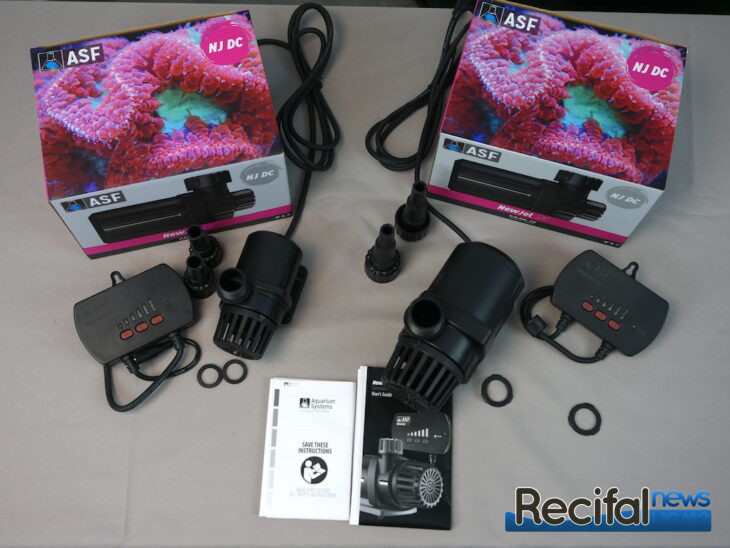 Ce sont deux pompes de remontée DC « classiques » qui proposent un contrôleur permettant de régler la puissance et de faire une pause pour le nourrissage de vos pensionnaires pendant 5 minutes. Lors de la mise en eau, j’aurai l’occasion de tester quelques points critiques sur un tel matériel comme le bruit / les vibrations ; le fonctionnement de la puissance, la consommation, la fonction nourrissage etc.