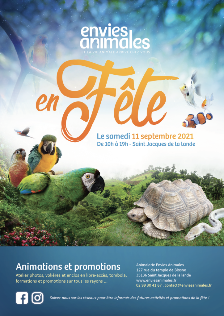 Après une période particulière, les animations et activités reprennent aussi bien dans les salons que les boutiques. Les échanges sont essentiels dans notre passion, et c’est pour cela que nous sommes ravis de relayer l’invitation à l’animalerie « Envies Animales », située près de Rennes, qui organise une journée portes ouvertes le samedi 11 septembre joyeusement appelée « Envies Animales en fête ». Voici les détails de cette journée spéciale dédiée aux animaux de compagnie !