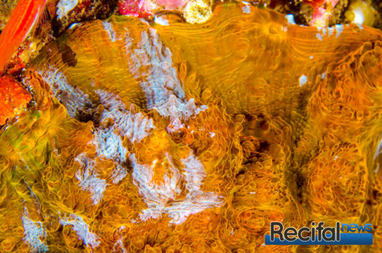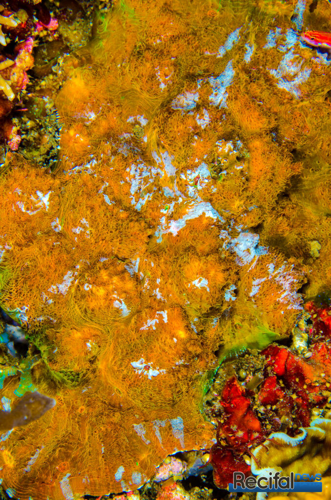 Les variété dorées d’Echinophyllia sont courantes dans le commerce, mais rares dans le milieu naturel. C’est grâce à de remarquables collecteurs et des cultivateurs très doués qu’au final ces pièces atteignent les aquariums. Chez les Echinophyllia dorés, il existe principalement 2 types. Le premier est Echinophyllia orpheensis qui provient de la grande barrière Australienne. Et l’Echinophyllia aspera doré Indonésien dont nous allons parler dans ce post. On notera que de récentes analyses génétiques regroupent ces deux espèces sous une seule. Mais leur forme et la densité de leur squelettes sont différentes.