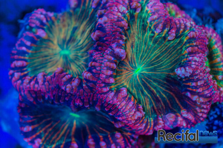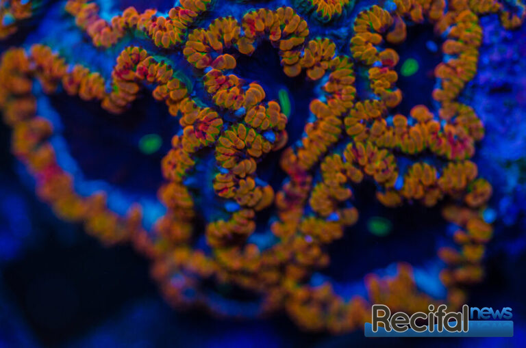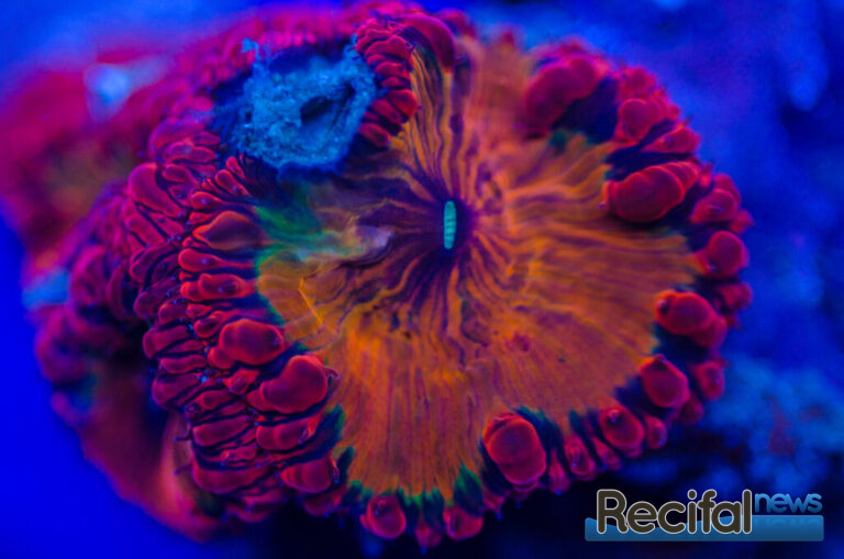 Mais souvent les coloration peuvent être complètement incroyables. Le orange est très rare chez cette espèce mais lorsqu’il est présent, on rentre dans les catégories des coraux Ultra. Ensuite le disque oral peut être parcouru de ligne, donnant une apparence tigrée au corail. Cette spécificité est très recherchée. Et enfin, certains spécimens peuvent avoir le disque oral de plusieurs couleur, voire même « rainbow » avec des déclinaisons de orange, rouge et vert. Et là on atteint le Saint Graal !