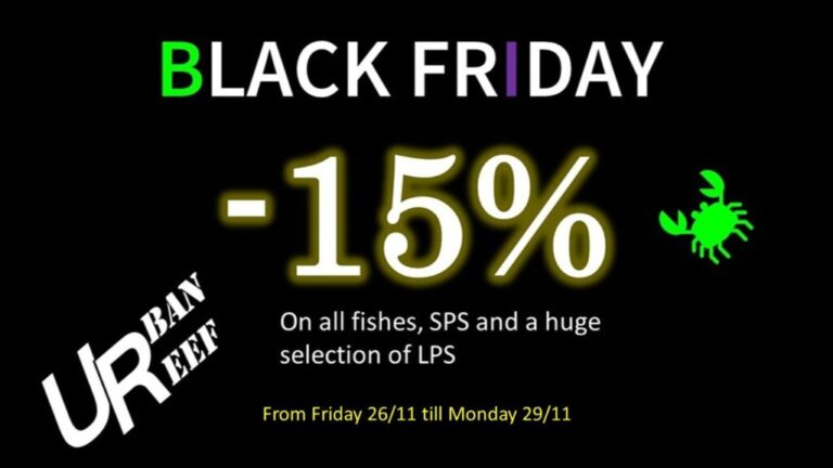 Chez Urban Reef Corals, profitez jusqu’à lundi de 15 % de réduction sur tous les poissons, les SPS et une sélection de LPS.