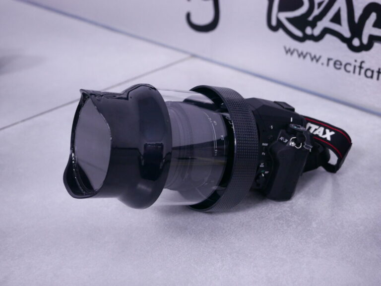 Alexandre aime créer, comme ce hublot étanche permettant d’avoir encore accès à la mise au point sur son objectif manuel et prendre ses coraux en mode « immergé » !