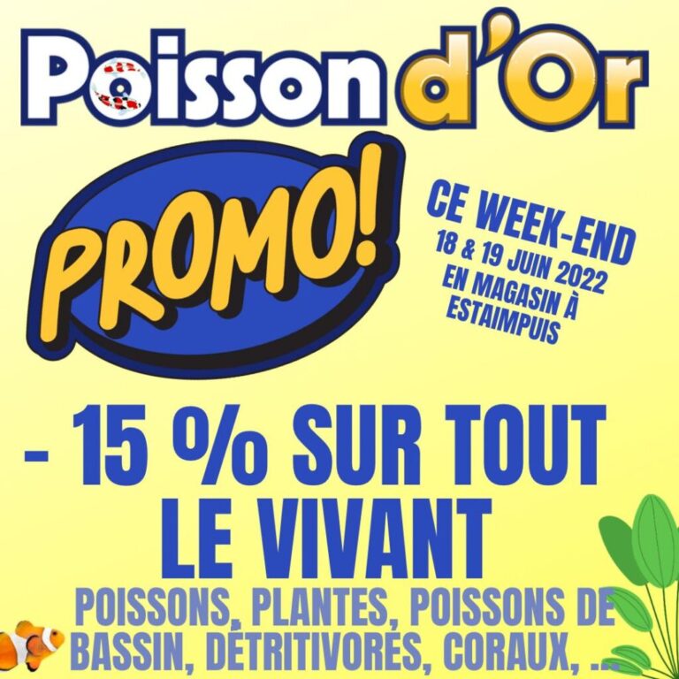 L’info vient de tomber, le Poisson d’or organise un week-end promotion sur le vivant avec une remise de 15% dès 50€ d’achat sur le vivant.