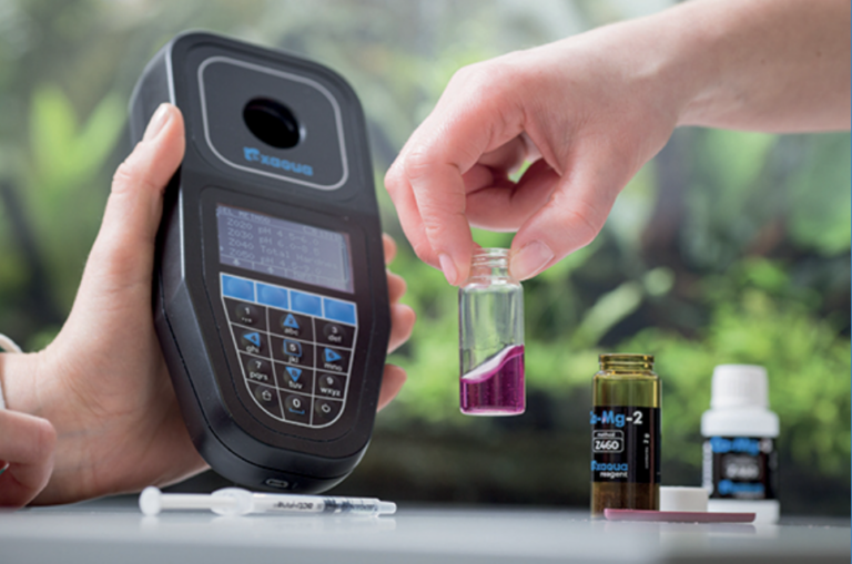 Il est possible d’acheter le photomètre seul, et les réactifs pour l’un ou l’autre des éléments selon vos besoins, ou d’acheter un kit complet, avec une version eau douce et une version eau de mer. L’appareil est résistant aux éclaboussures (IP65) et à la poussière, fonctionne avec une pile rechargeable par USB permettant jusqu’à 10h de mesure en continu.