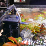 A cela s’ajoutent de nouveaux filtres internes, les Shark Pro, au nombre de 3. Ces filtres au design cubique sont composés d’une tête de pompe avec un bouton de réglage de débit, et deux modes de sorties : une sortie unidirectionnelle avec une buse évasée sur laquelle il est possible de placer une prise d’air pour créer un effet venturi, et une sortie en « spray bar », en soulevant le dessus du filtre, ratissant et oxygénant l’eau à la surface. A cette tête de filtre viennent s’aimanter des blocs de filtration, 1 à 3 selon le modèle d’origine, avec la possibilité d’en rajouter en achat séparé. Ceux-ci viennent se glisser les uns sur les autres et sont indépendants pour le fonctionnement du filtre. Ils sont fournis d’origine avec des mousses et une cassette de média biologique.
