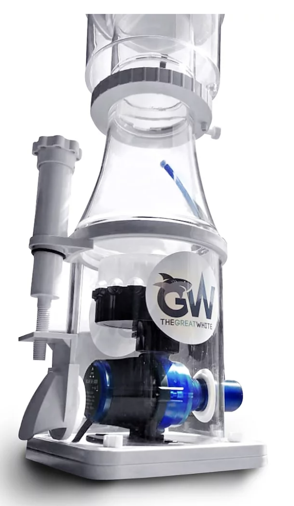 Cinq modèles d’écumeurs The Great White Shark par la société Dalua existent, conseillés pour aquariums de 740, 1280, 1800, 2320 et 3000 L. Ils sont équipés d’une pompe DC (réglable) de la marque EDEN pour un réglage fin en plus du réglage de niveau d’eau et de prise d’air. Leurs pieds en silicone réduisent les risques de vibrations.